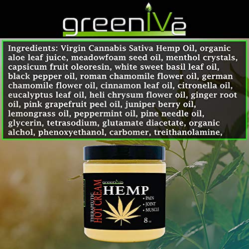 Specification: GreenIVe Hemp Hot Cream Massage Lotion Soothing and Moisturizing Joints, Muslces, and Wraps for Skin Tightning (8 oz Jar)