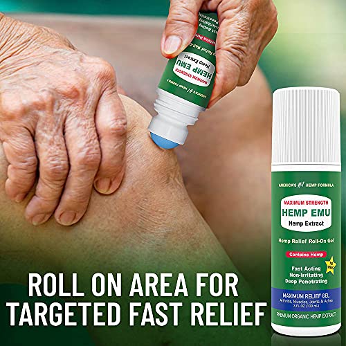 Hemp Emu Roll-On Relief Gel – Made in USA – Natural Hemp Gel Soothes Discomfort in Joints, Muscles, Back, Knees…