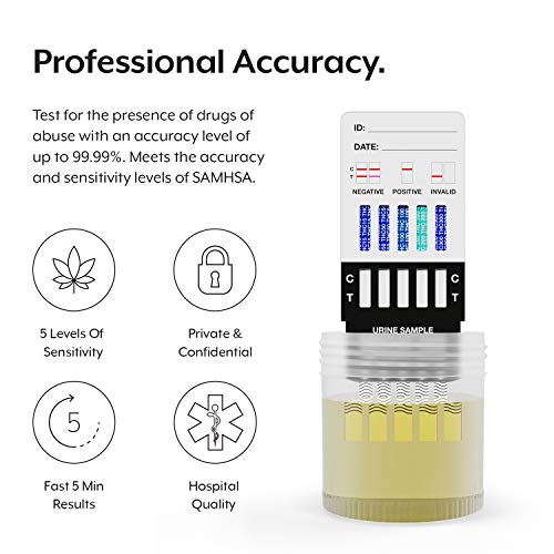 HIGHLY SENSITIVE & RAPID RESULTS: Test urine for the presence of Marijuana across five sensitivity levels and as low as 15ng/ml in just five minutes. Perfect for home drug testing, workplace drug testing, school/college/university drug testing and substance abuse rehabilitation centers.